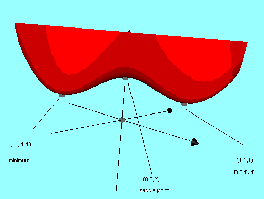 These second partials are in agreement, so the graph is concave up, along the x and y . I found no saddle points, but there was a minimum: To check if a critical point is maximum, a minimum, or a saddle point, using only the first derivative, the best method is to look at a graph to determine . A saddle point at (0,0). Also called minimax points, saddle points are typically .